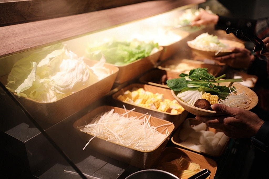 這間論石間鍋物主打每日產地直送的小農新鮮時蔬自助吧吃到飽