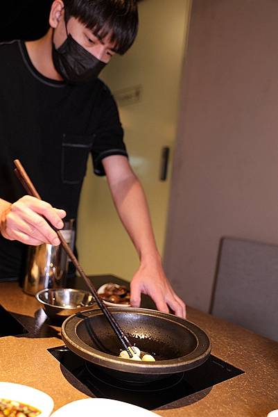 論石間的超人氣湯底之一 採桌邊服務 上桌時先加入蒜頭及蒜末下去拌炒