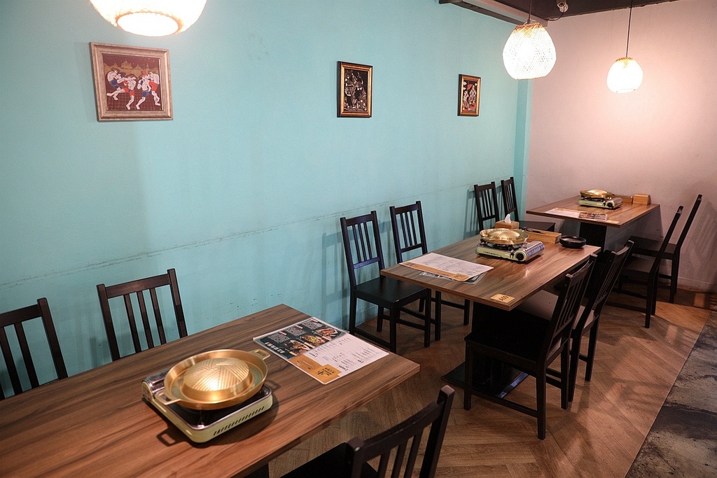 座位以2~4人為主 每桌桌上都有擺放泰式的銅盤烤盤