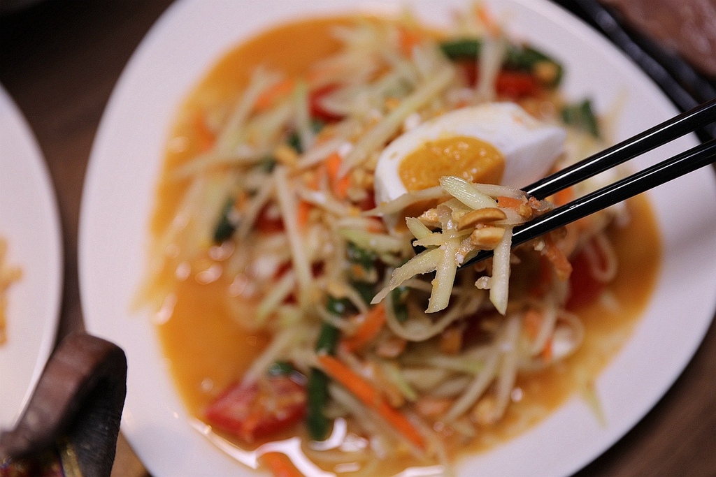 吃起來有金沙及木瓜絲的爽脆口感 如果想嘗試更貼近泰國當地的青木瓜沙拉