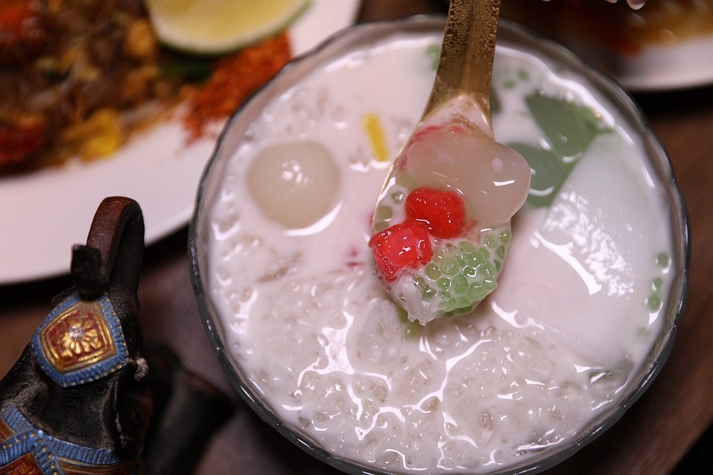 裏頭加了西米露、菠蘿蜜、椰子肉、紅毛丹…等食材