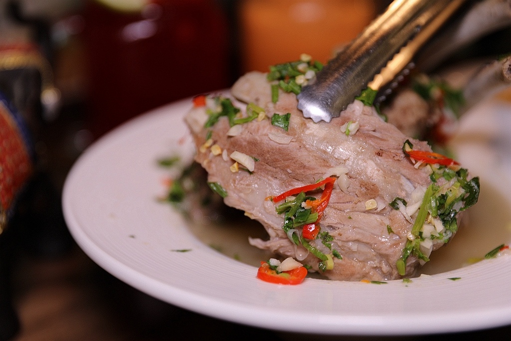 新鮮溫體豬烤熟後 肉質鮮嫩汁甜 搭配上海鮮醬或泰式酸辣醬 美味更升級