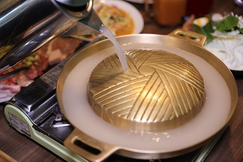 隨著燒烤肉肉時 肉汁隨著盤面流入高湯中 湯頭會更加鮮美