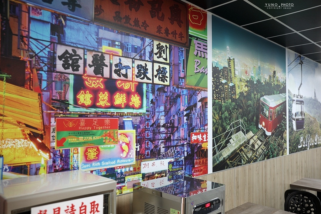 空間寬敞舒適 牆面上還有香港的美景圖 可以欣賞 比一般便當店舒適多了