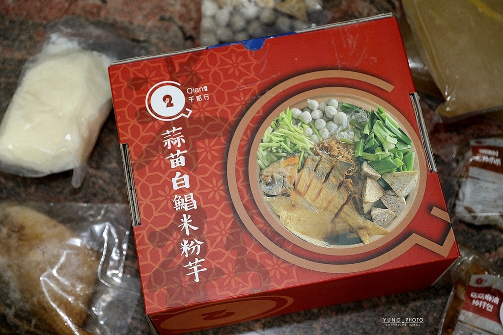 有專用的外箱裝著 外箱上有註明蒜苗白鯧米粉芋的烹煮方式