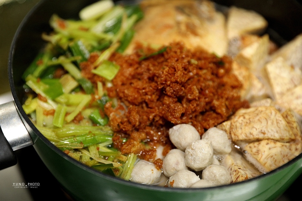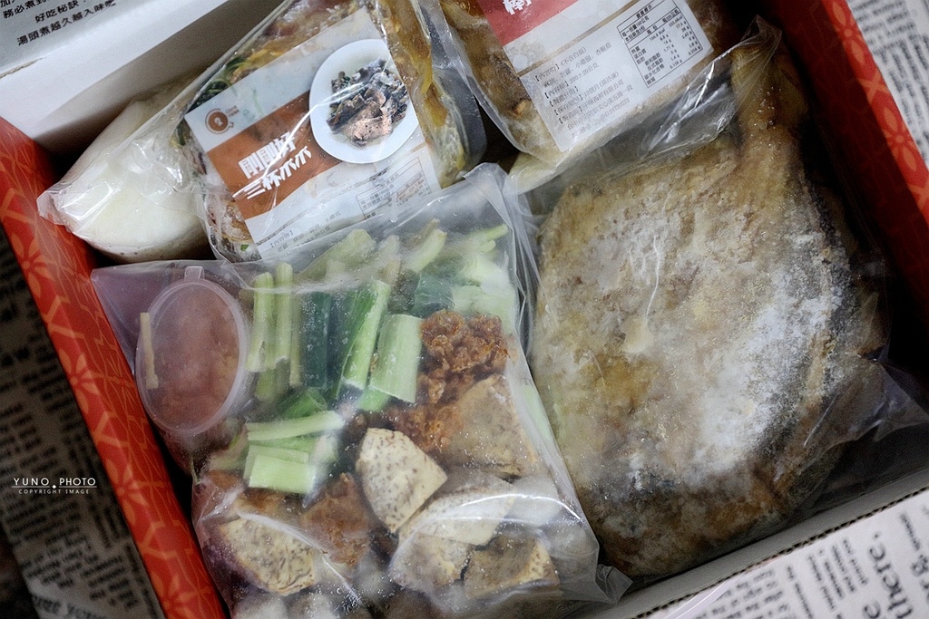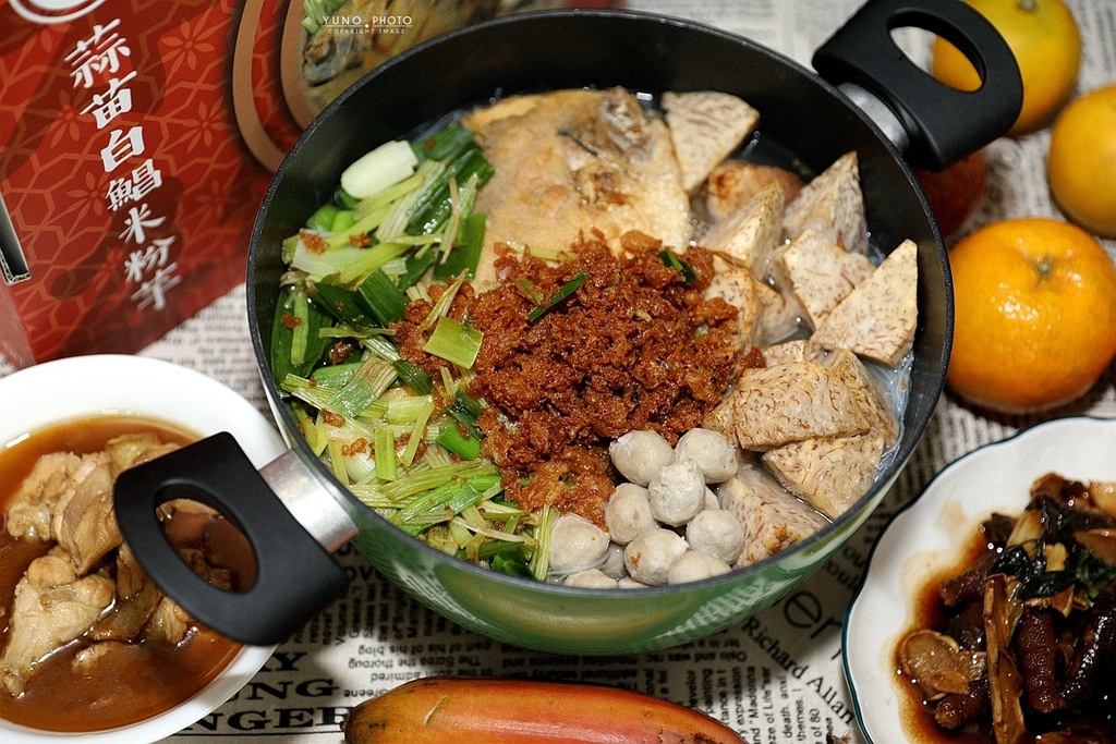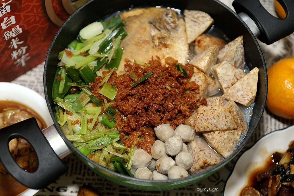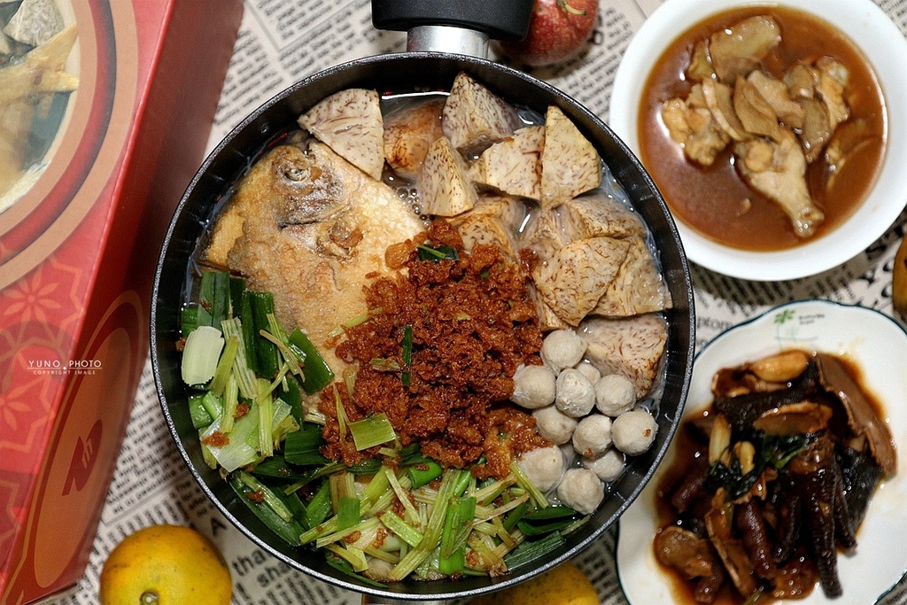 料理包裡還有手工虱目魚丸、大甲芋頭、蒜苗、芹菜、蝦米、蛋酥