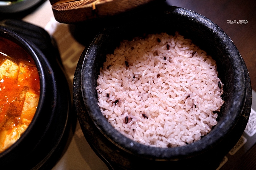 豆腐煲系列附的韓式石鍋飯 放久一點底部會有鍋巴更有香氣
