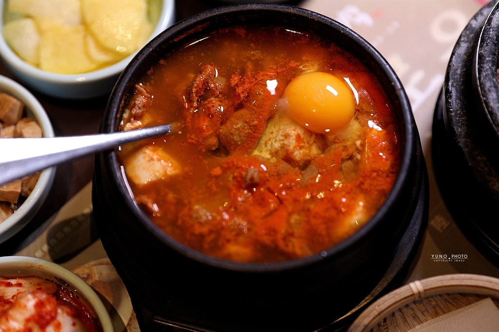 基本上只要點豆腐煲就含麥茶、韓式小菜(無限量供應)、韓式石鍋飯和甜點...等等