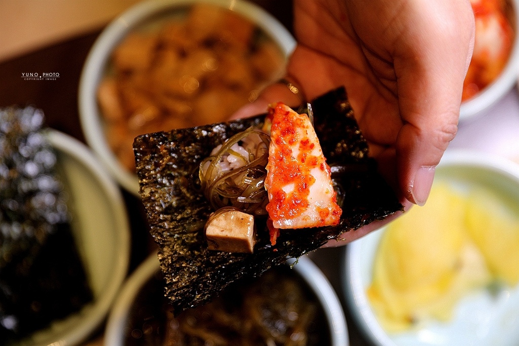 韓式小菜的海苔除了單吃也可以包著小菜或紫米飯一起吃