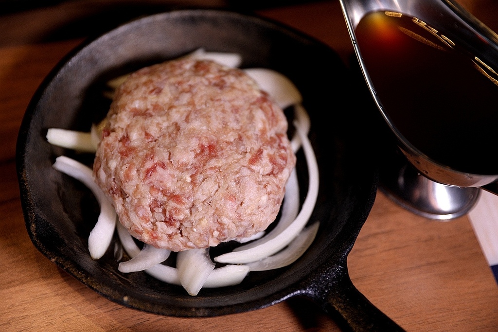 底下舖上洋蔥 香氣十足 烤一烤之後 在加淋上特調醬汁煮一下