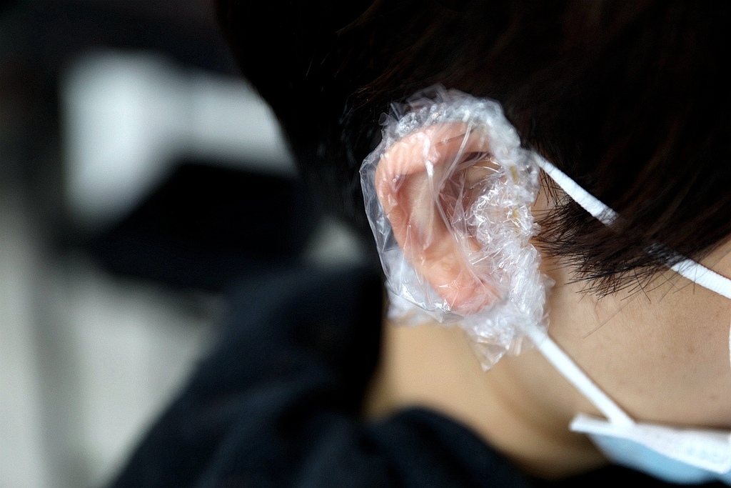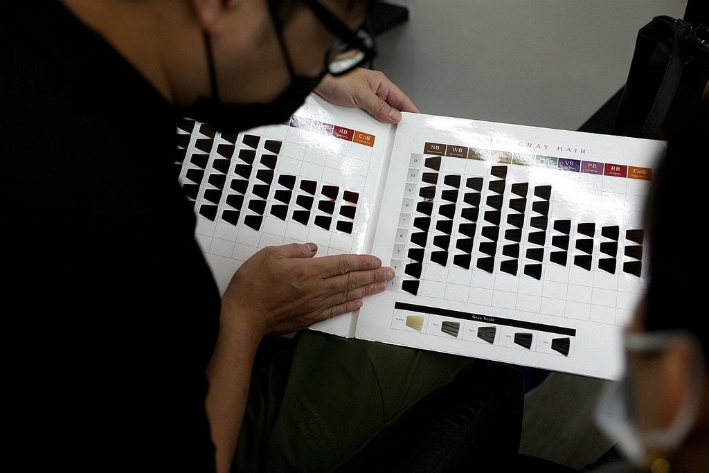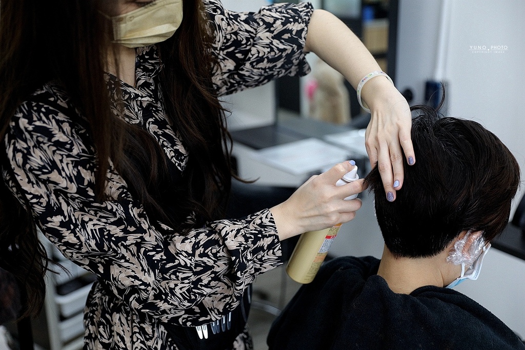染髮過程中過程中Sam和助理們會不時過來確認髮色是否均勻上色