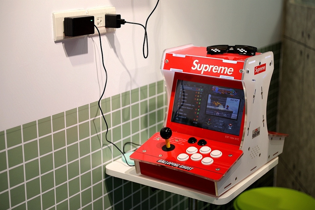 一旁還有這台復古電玩機台 可以讓人實現街頭雙人對打