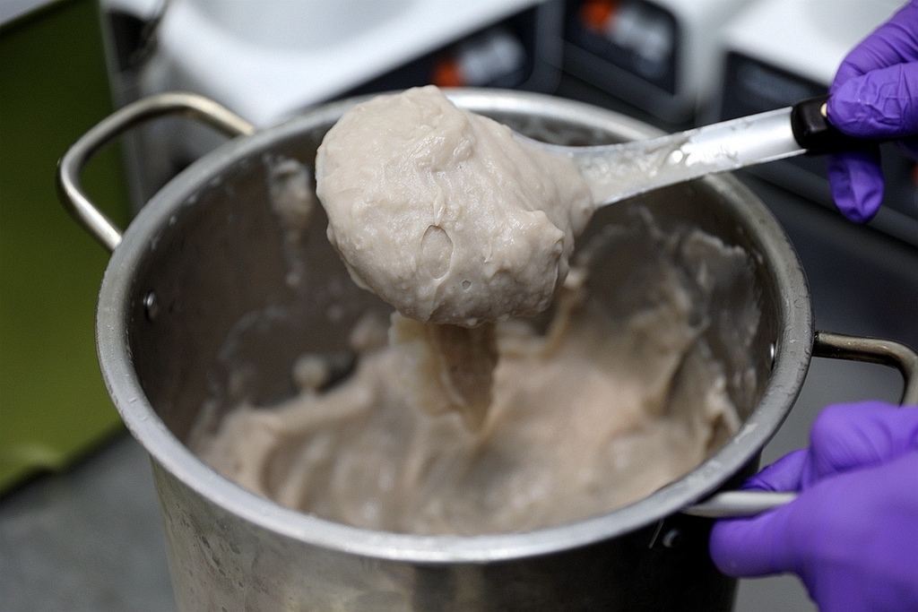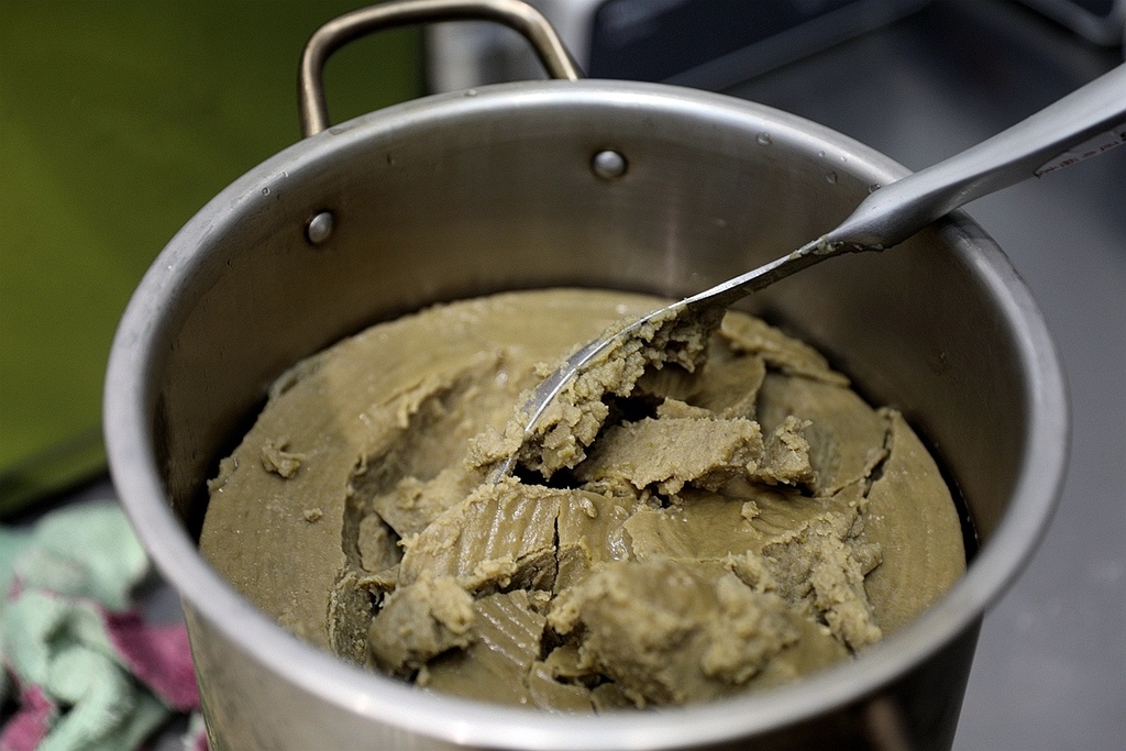 綠豆沙都是頃刻間每天手工熬煮 顧火、攪拌 磨成泥狀 非常費時又費工