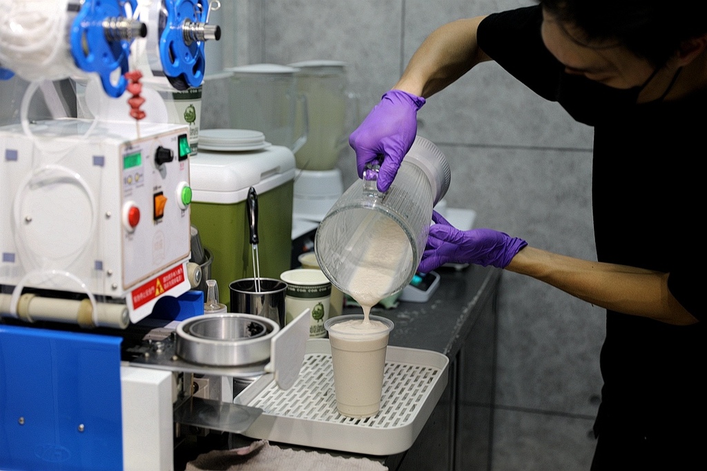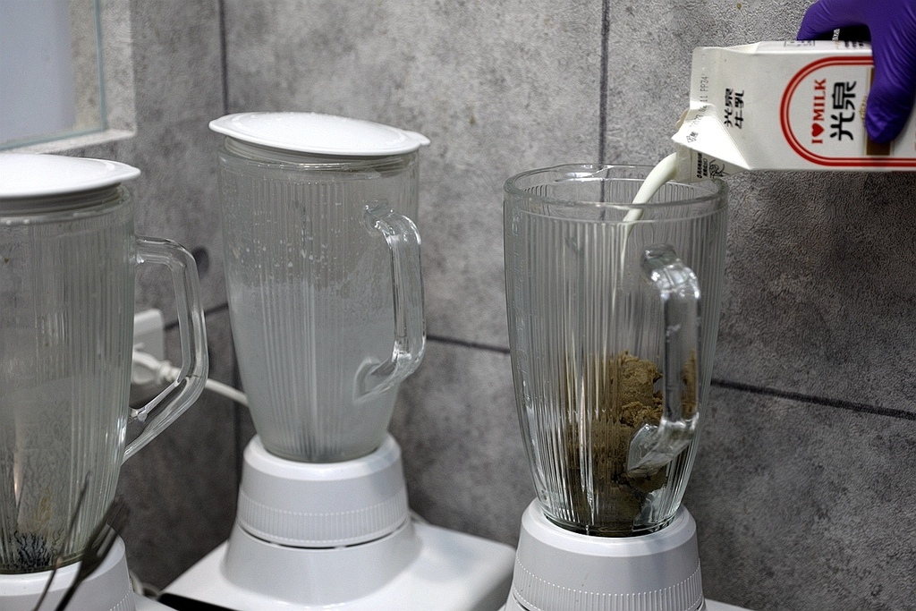 最後客人點餐時 再拿出來搭配鮮奶一起打成綠豆沙牛奶 質地相當細緻