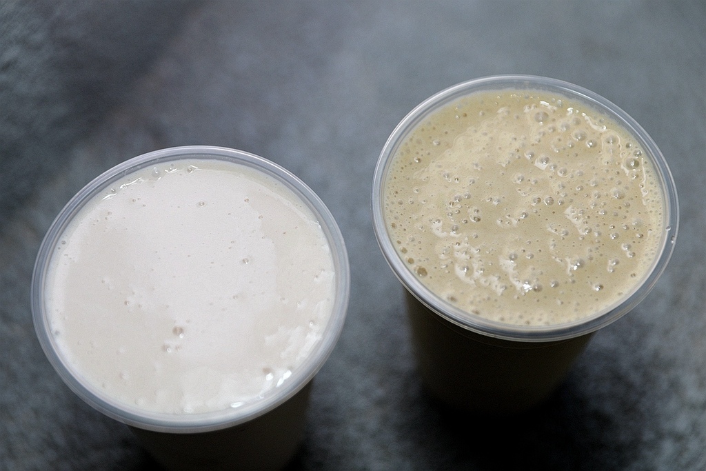 綠豆沙牛奶、芋頭沙牛奶