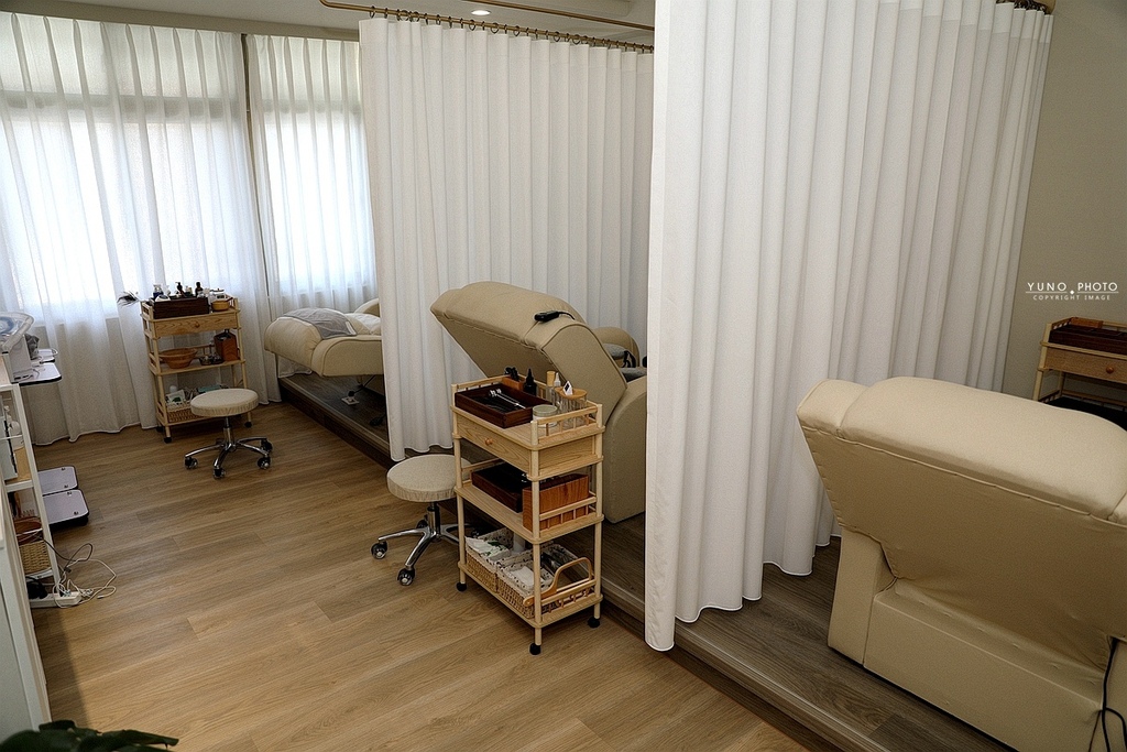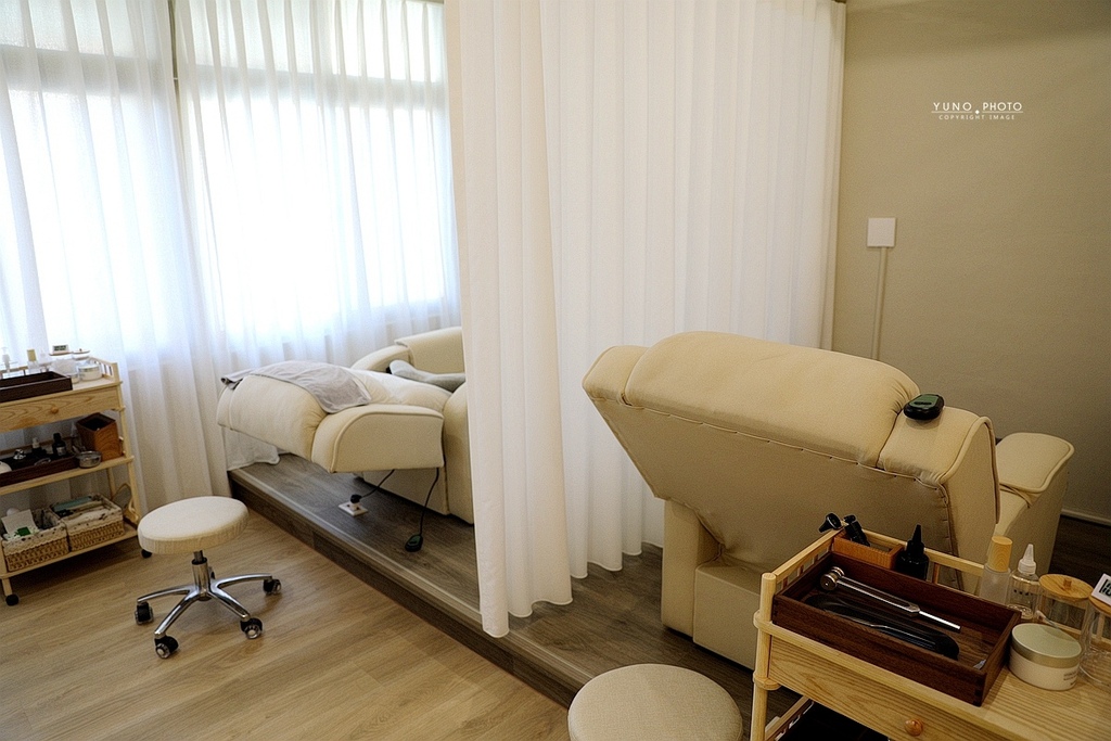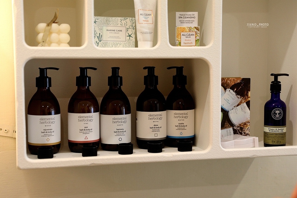 乾淨明亮舒適的空間設計、美感氛圍、技術流程都透明又清新 使用來自英國品牌的頂級五行精油香氛