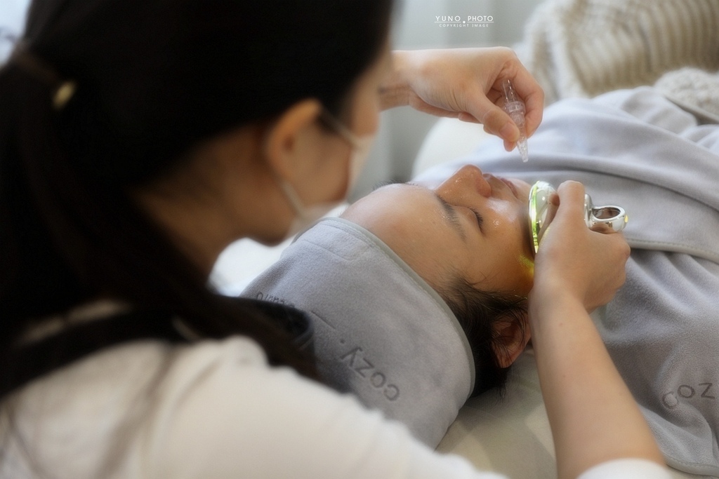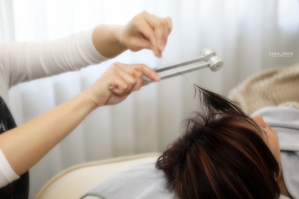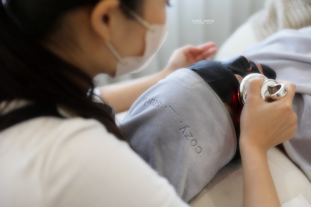 接著再用熱敷眼罩溫熱整個眼部 讓眼睛徹底的放鬆 搭配輕柔的輕音樂與頭皮指壓放鬆