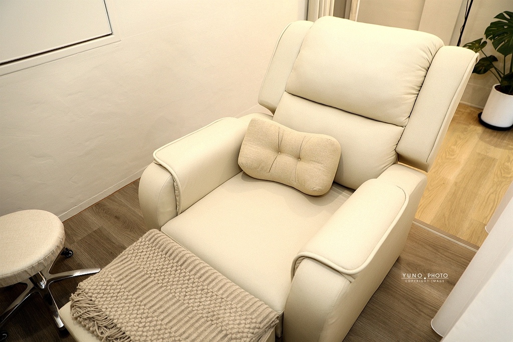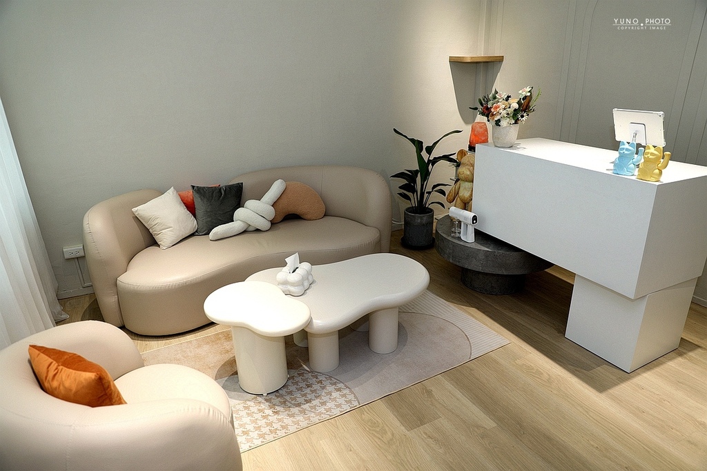 到店後第一次會有初步的資料填寫及認識 接待及休息的空間蠻寬敞 還有寬敞舒適的沙發 有種置身在日系咖啡廳的錯覺感