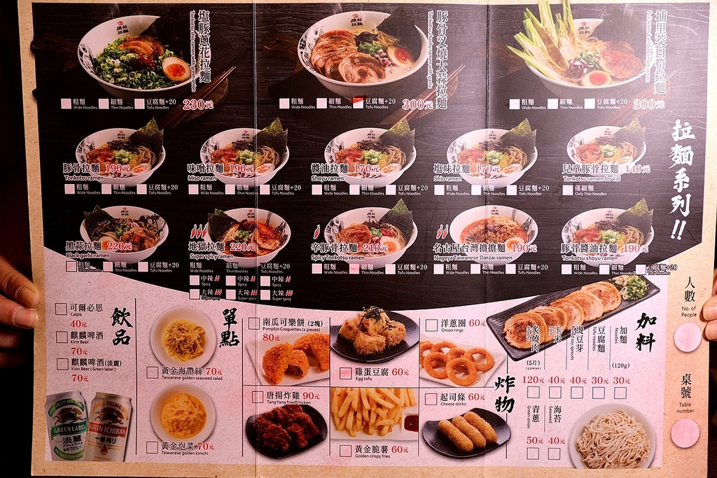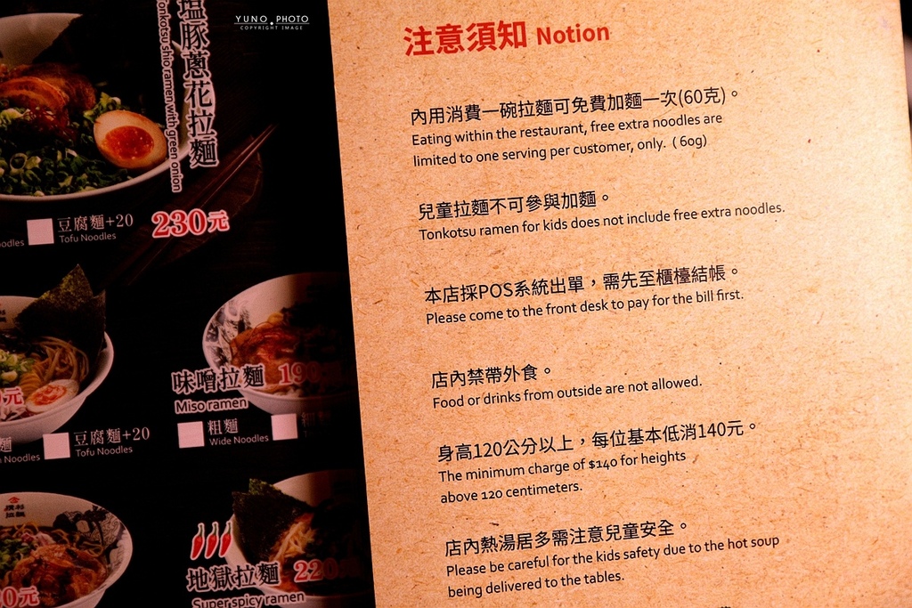 拉麵的價位從140元~300元不等 人氣主打最上方的三款拉麵