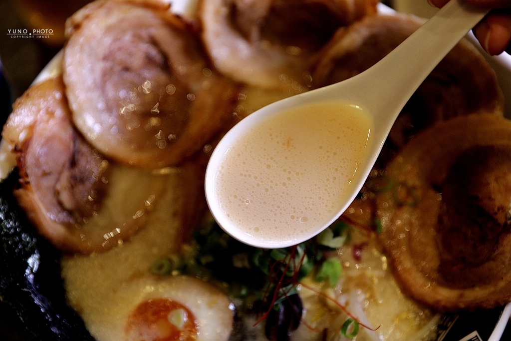 湯頭使用豬大骨、雞骨、蔬菜 費時十小時熬製的豚骨湯為基底