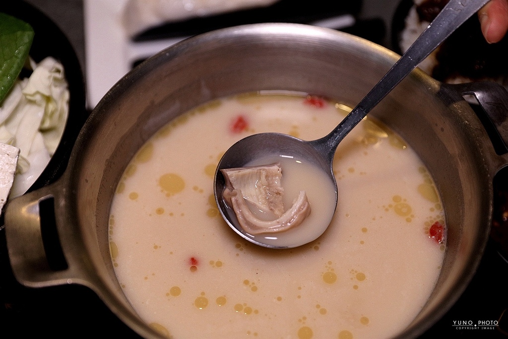 火鍋店最重要的靈魂 就是火鍋湯底啦!這熬煮到乳白色的招牌胡椒豬肚湯 是森饗鍋物的招牌神湯頭