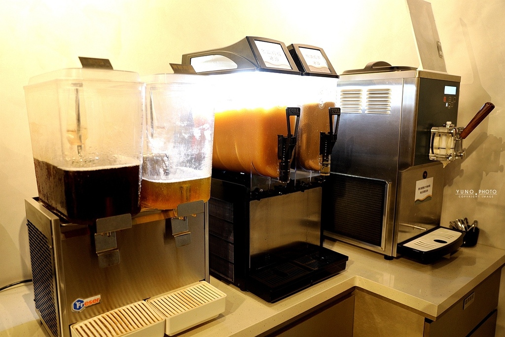 飲品的部分則是有:咖啡機、紅茶、無糖綠茶、冬瓜檸檬冰沙、與奶茶冰沙