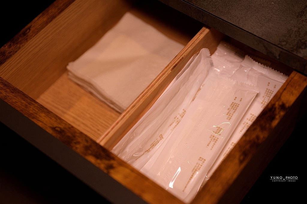 用餐時想取用濕紙巾或餐紙都可以在餐桌側邊的抽屜內拿到