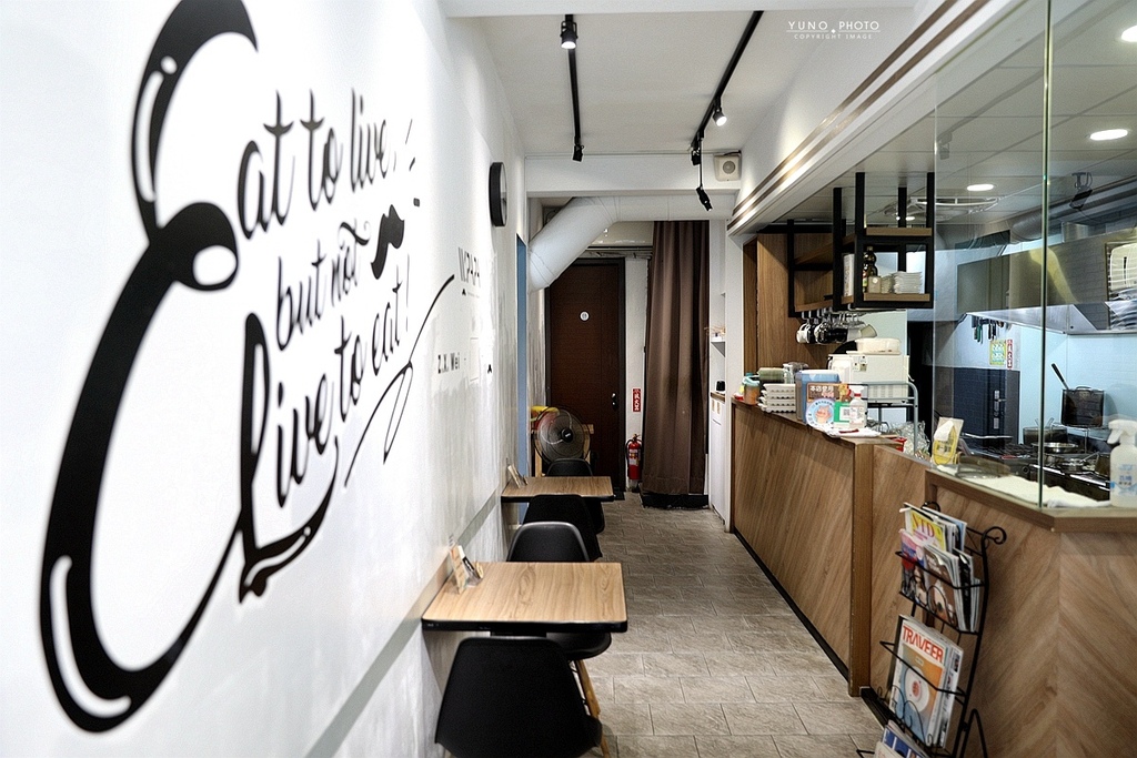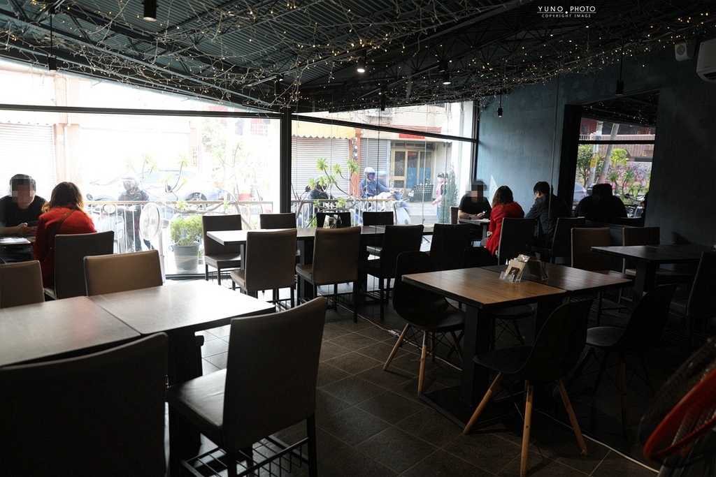 店內座位以2~4人座為主 分成兩區用餐區 裝潢以木質色調混合工業風 大片的落地窗與白磚牆面