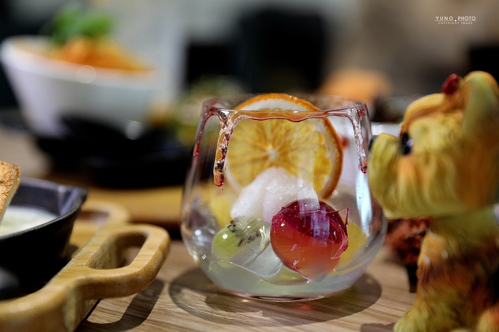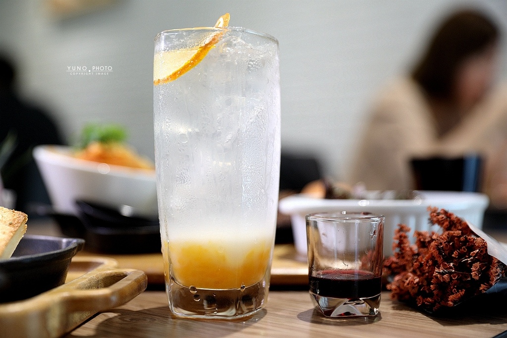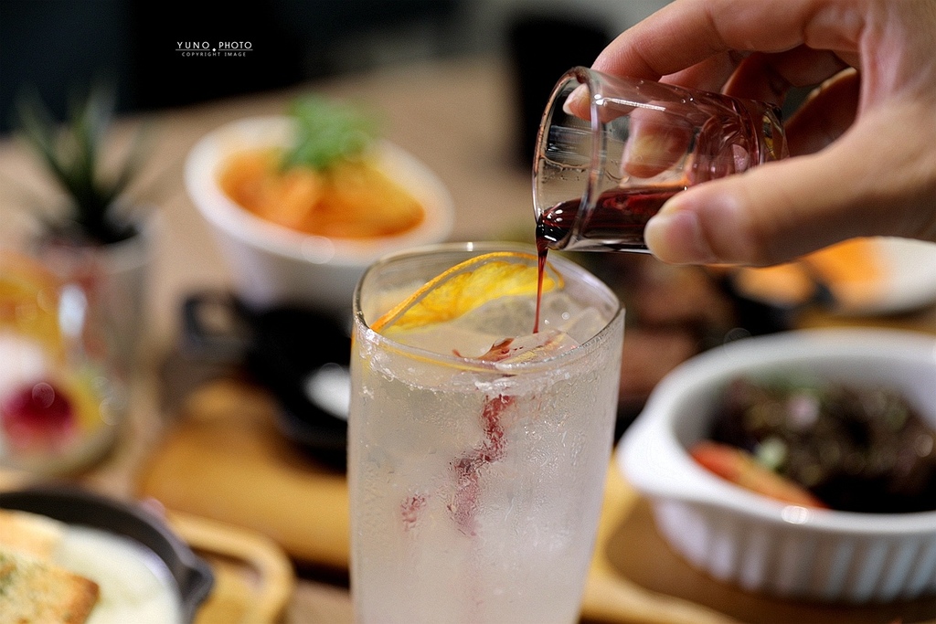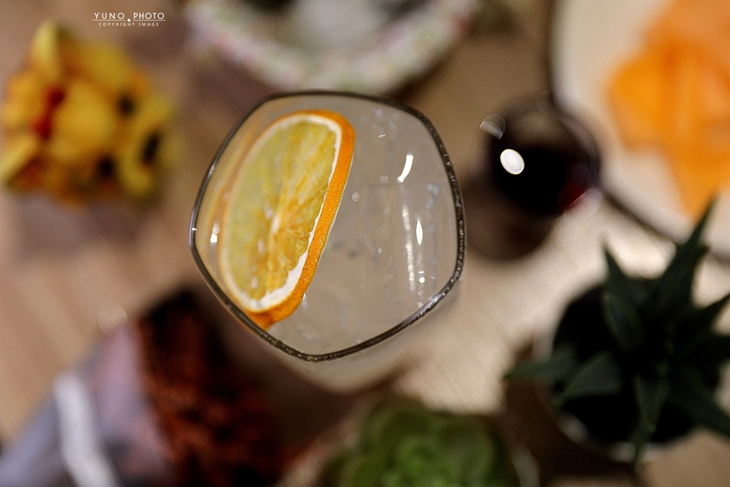 用莓果的香甜搭配柳橙片的清香 加入氣泡水後呈現的氣泡果香