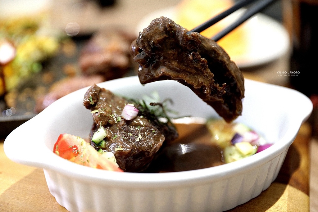 燉牛頰肉有非常豐富的膠原 肉質吃起來相當軟滑