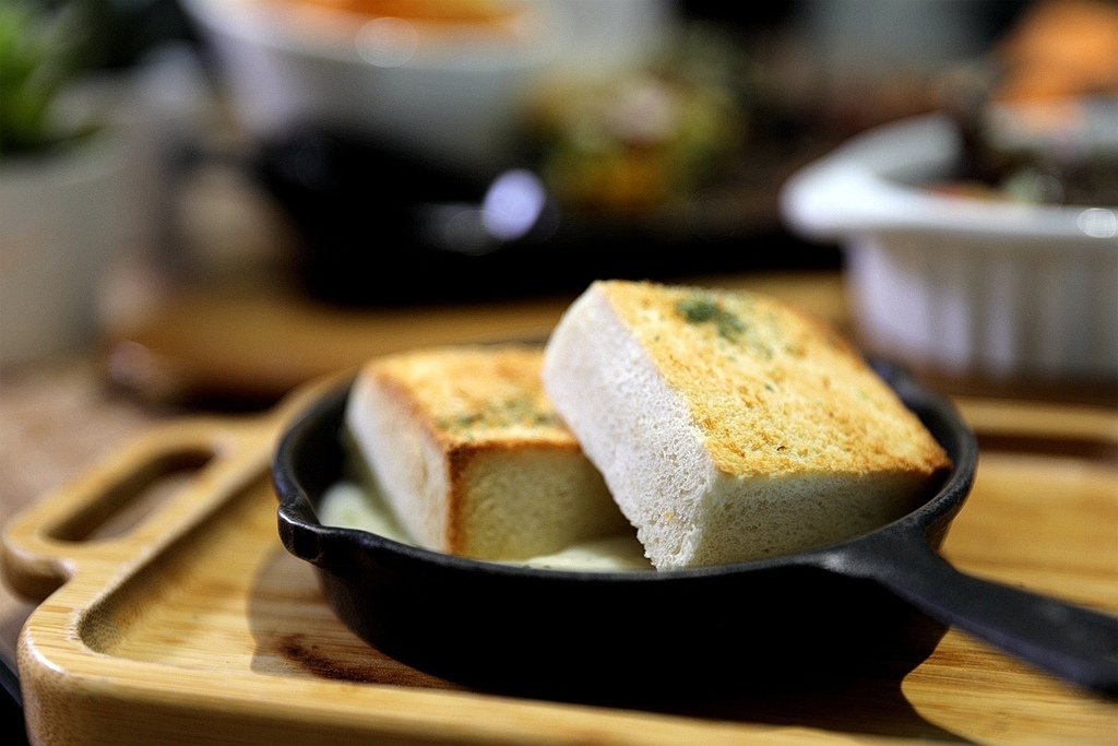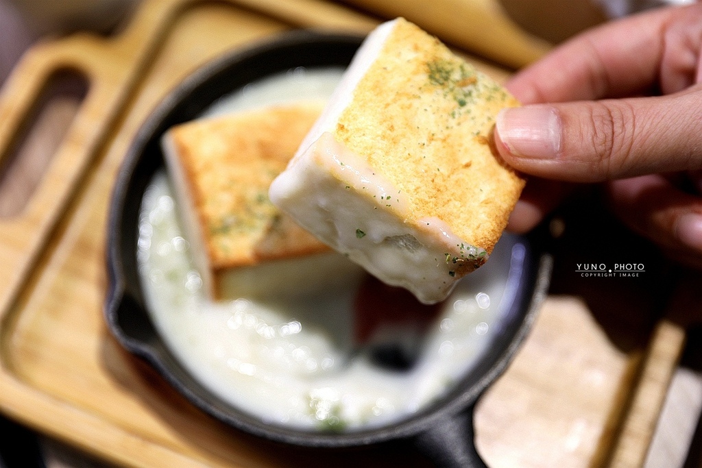酥脆的方塊麵包沾著濃湯醬汁吃 奶香濃郁 層次感相當豐富 相當有創意又美味