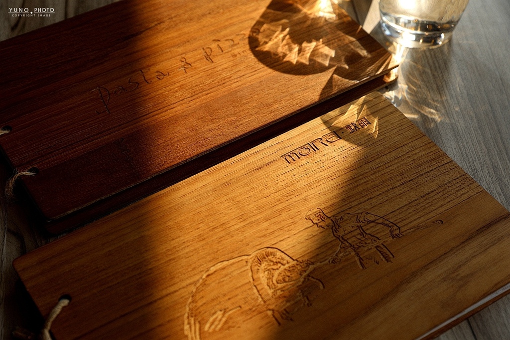 每個木片都是獨一無二的紋路 手繪風格設計的菜單相當有特色