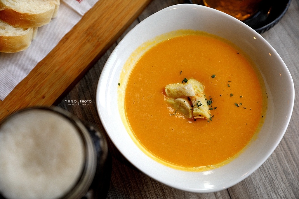 今天喝到的是南瓜濃湯 湯頭濃郁 一入口都是南瓜的清甜味