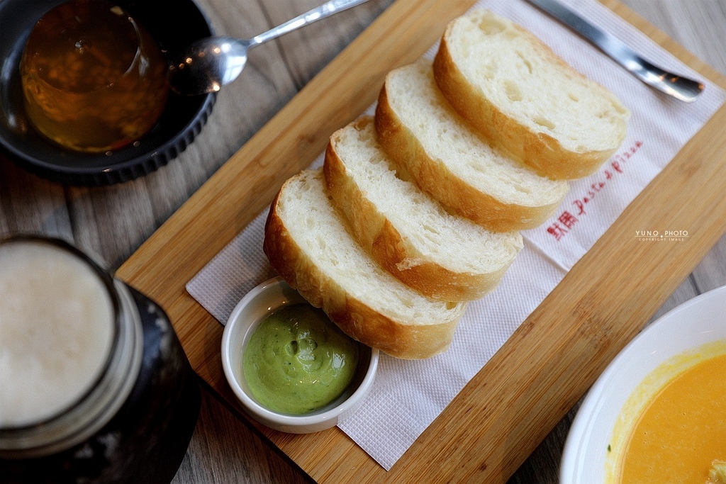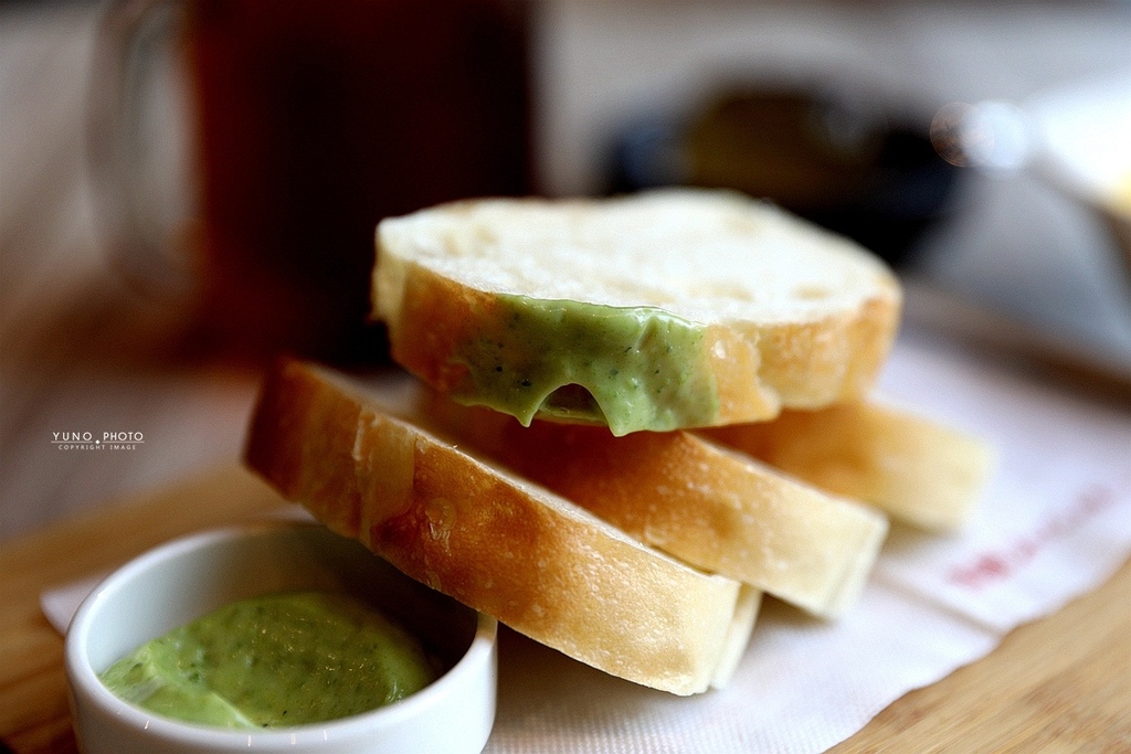 餐點上桌前 點主餐會附上隨餐麵包 可以抹上羅勒奶油抹醬
