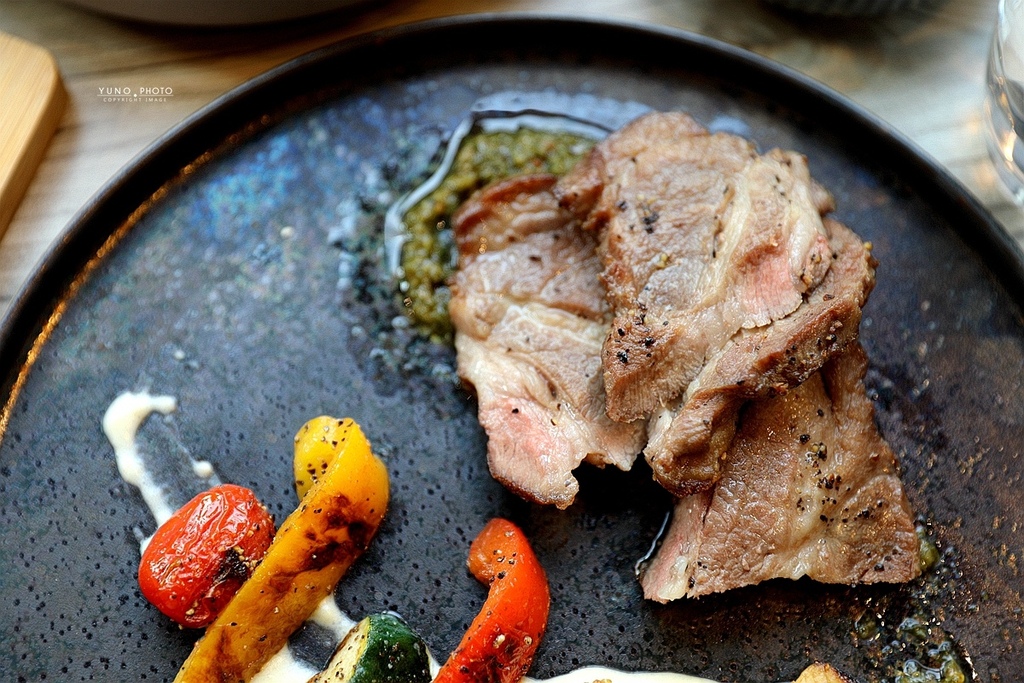 主廚運用爐烤 呈現伊比利豬的柔軟細嫩 一上桌就聞到甘甜的濃厚肉香