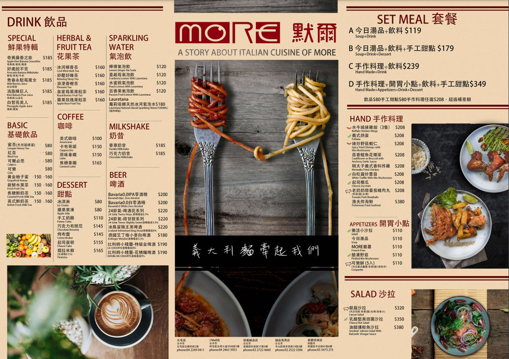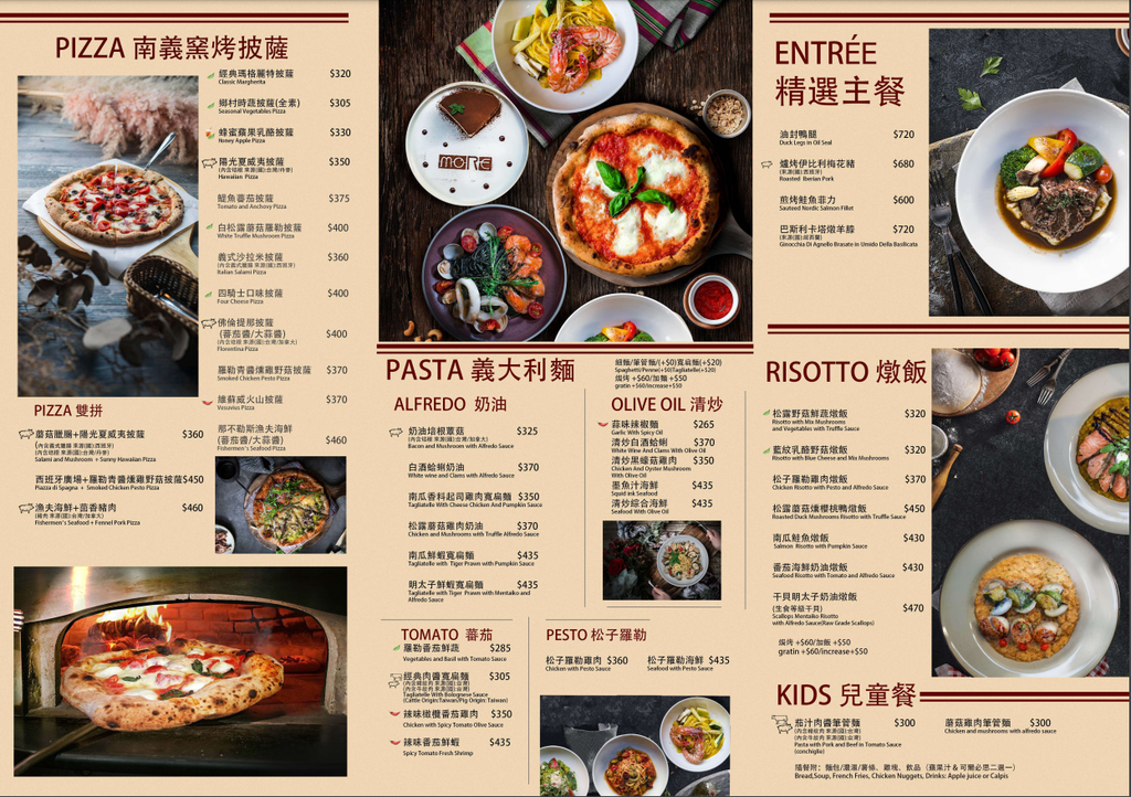 提供多元化餐點 除了義大利麵及披薩外 還有下午茶、甜點、飲品...等等可以選擇
