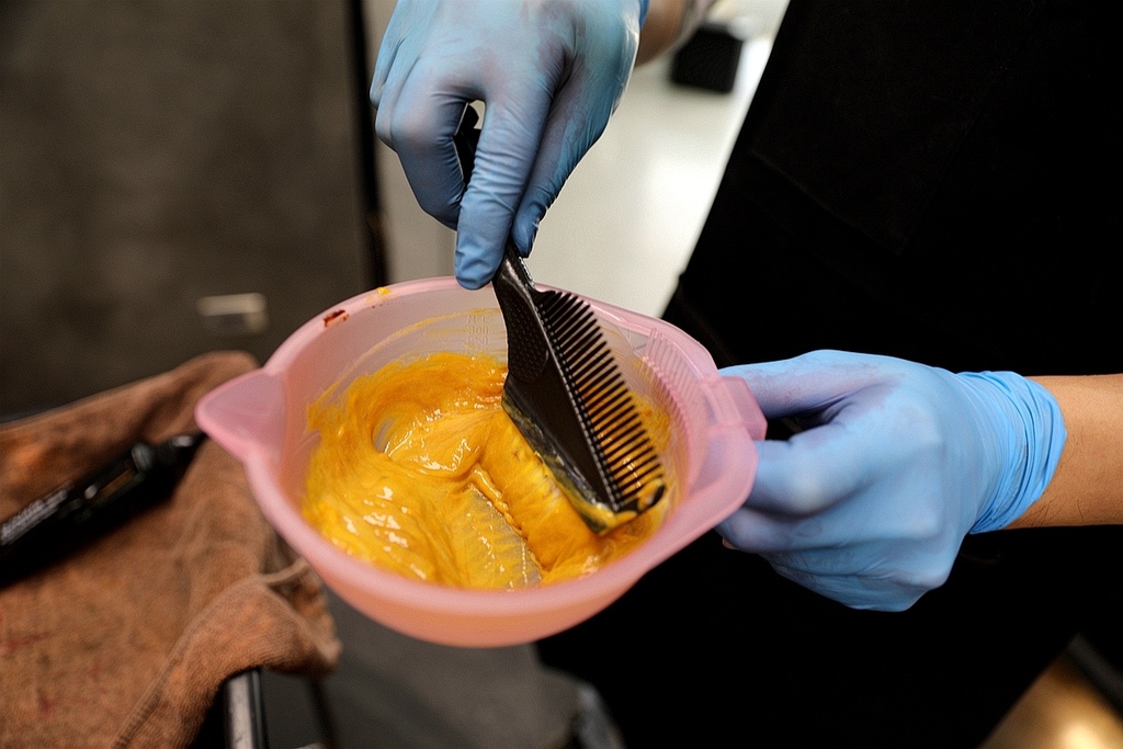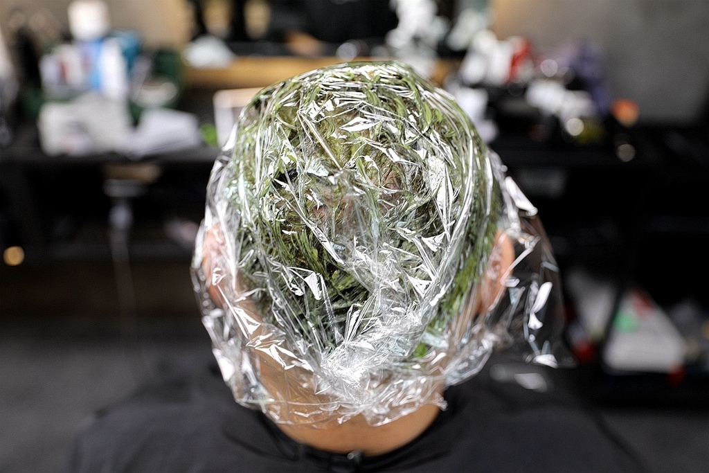 這是Eu溝通後 特地調製的染髮膏 染後會呈現墨綠色 在綠色慢慢褪掉之後