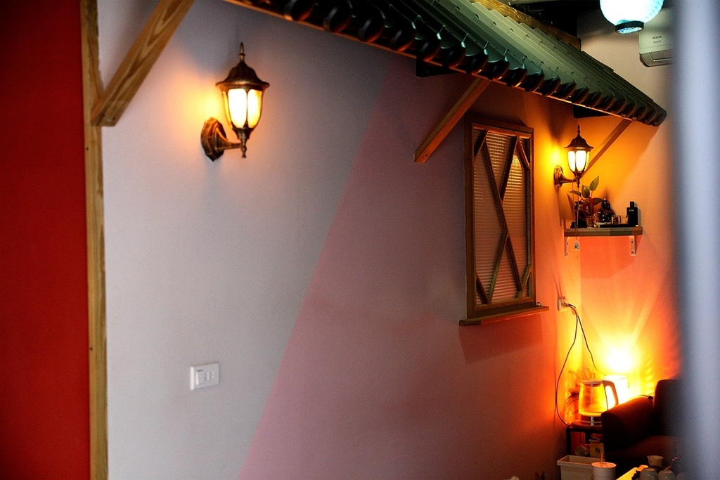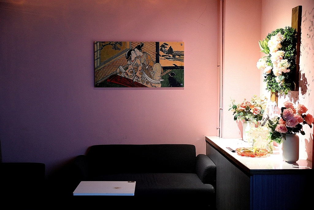 這日式裝潢 可是他觀察日式歌舞伎町場景加上自己的想法所搭建出來的