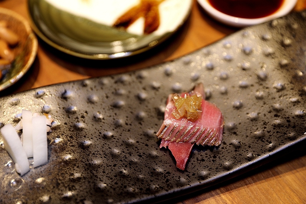 魚皮經過炙燒 香氣十足 保留油脂飽滿的鮮紅魚肉