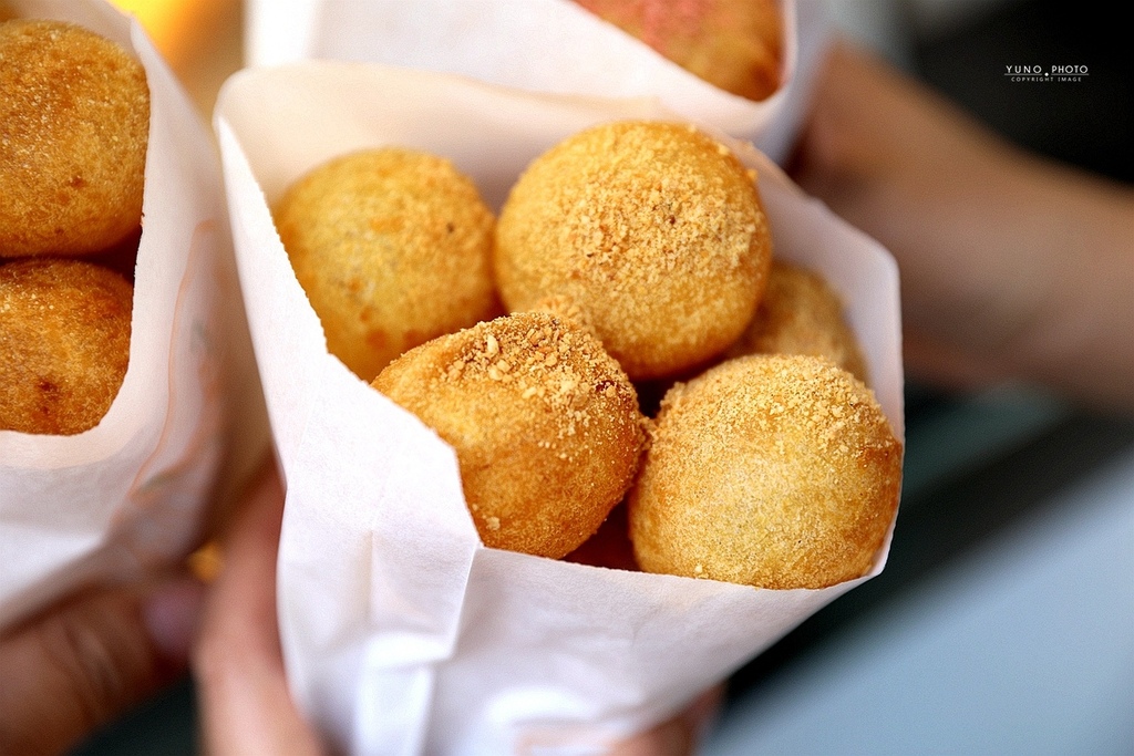 巨無霸地瓜球撒上帶有顆粒口感的花生粉 香氣十足