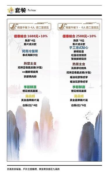 文章內有九瀧唐景觀宴會餐廳地址、電話、營業時間、完整菜單價目表menu可提供參考