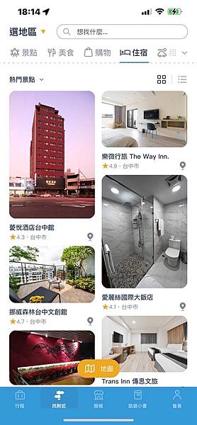 結束一天的旅程後 在去趣chicTrip找到附近的住宿地點
