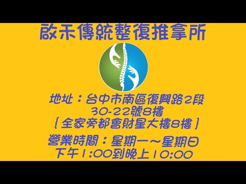 啟禾傳統整復推拿地址:台中市南區復興路二段30-22號8樓(全家旁都會財星大樓8樓)