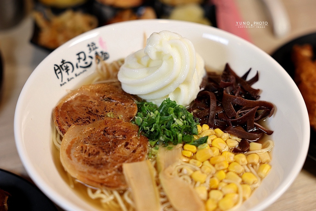 如果你是濃湯派 一定要試腩忍拉麵的「豚骨叉燒拉麵」湯頭是乳白色的豚骨系 喝起來超香濃順口 滿滿的膠質感但不會死鹹